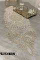 Piraye Runner, zarif ve şık tasarımıyla sofralarınıza sofistike bir dokunuş katmak için özel olarak tasarlanmıştır. Altında tül kumaş bulunan ve kordon işlemesi ile dekore edilmiş bu model, her detayıyla kaliteli bir görünüm sunar.